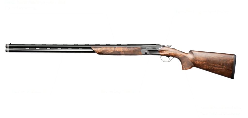 The cutting-edge lines of the receiver have been reduced to the essential and enriched by a revolutionary anti-glare texture allowing a wider view to the target. The lines of the stock blend seamlessly into the design of the contemporary receiver, following its fluid lines and providing major visibility on clays with lateral trajectories.