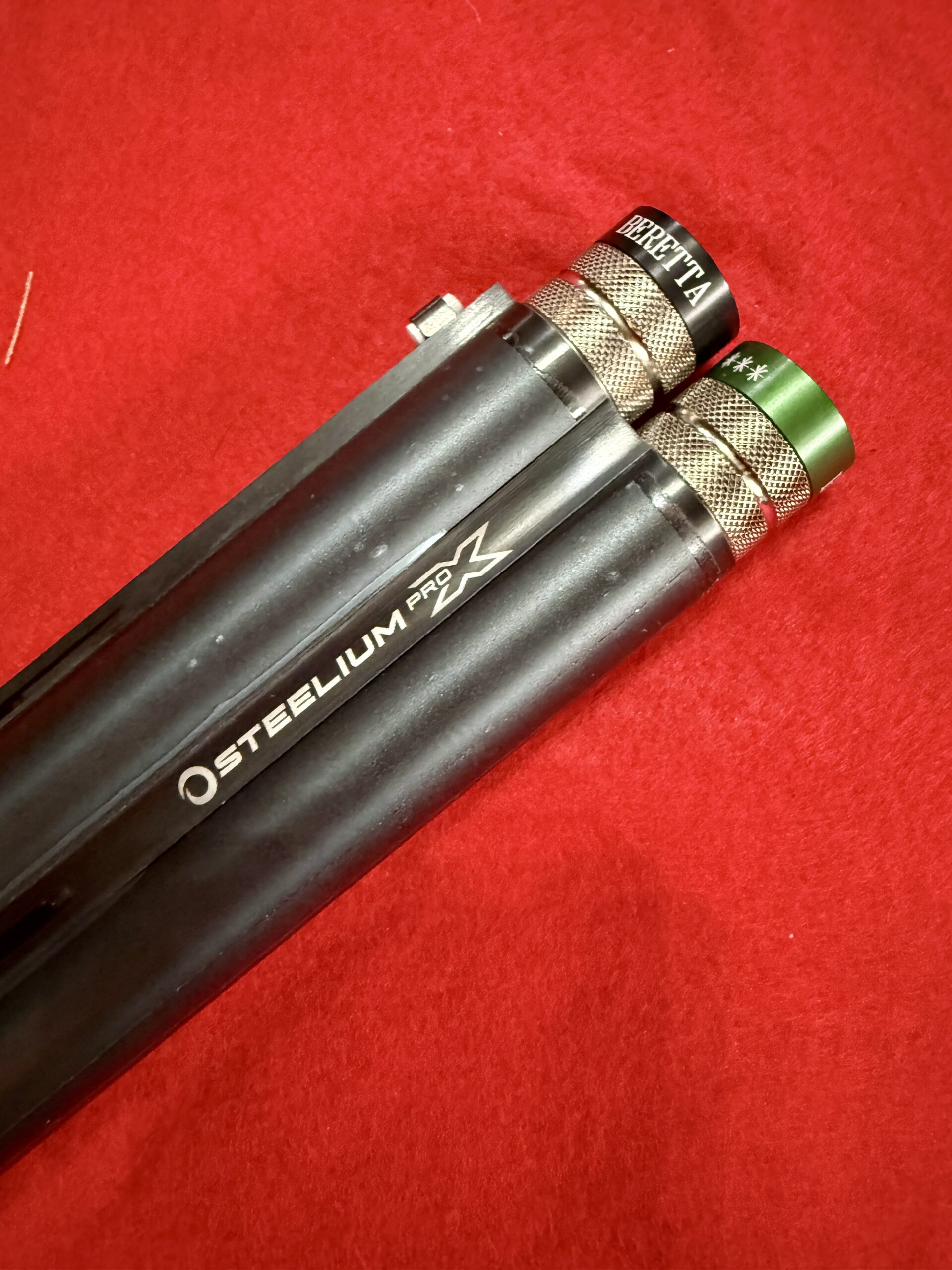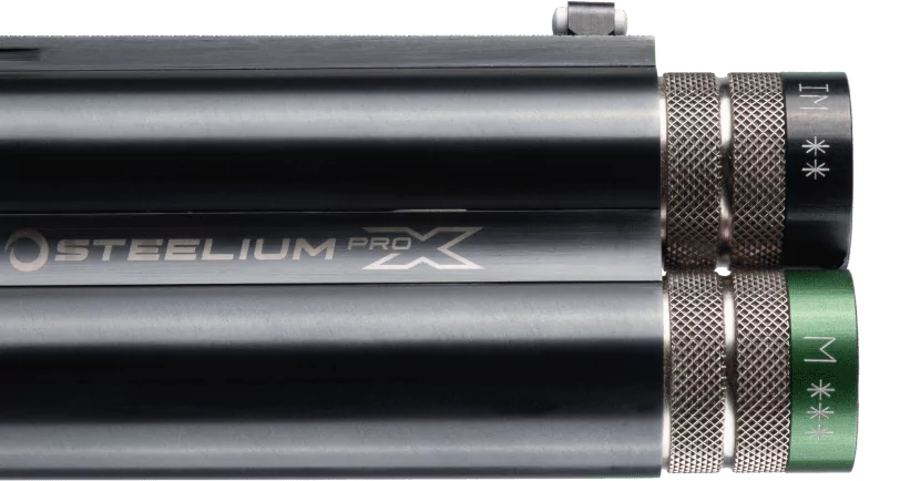 Steelium® Pro X barrels are equipped with longer choking for a smoother shooting experience. The Optimachoke® XP chokes, at 90 mm, are 20 mm longer than the 70 mm Optimachoke® HP chokes used in previous Steelium® barrels. To ensure safety and prevent incorrect assembly, the cylinder of the OCXP® chokes has been slightly modified from that of the OCHP® chokes, ensuring they cannot be interchanged with Steelium® Pro X barrels.